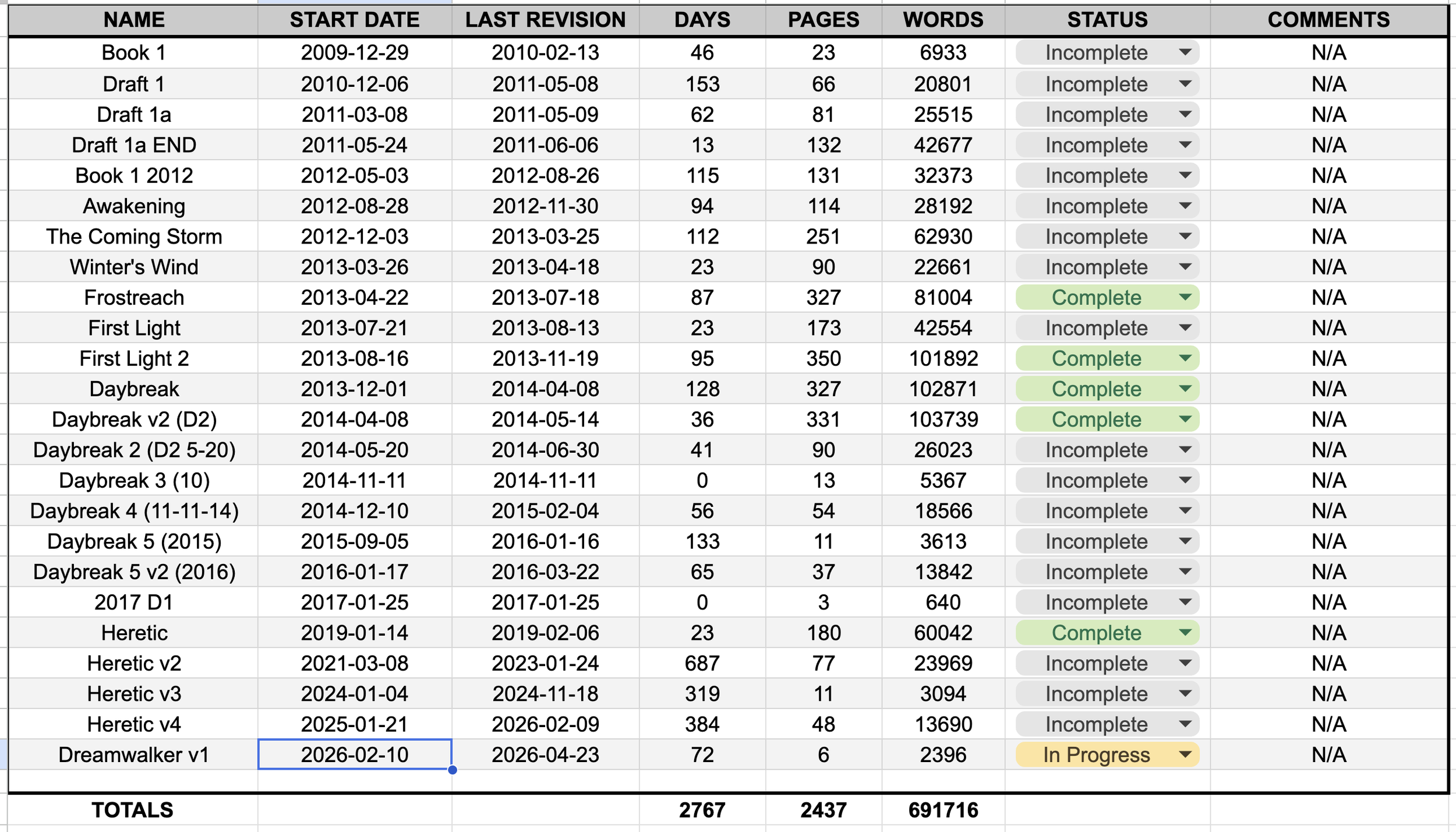 As of April 23rd, 2026, I have been working on a mythology series called Reckoning of the Gods for 5,959 days or 16 years, 3 months, and 25 days. In that time, I have written 24 different drafts, but I have completed only 5 of those drafts. If there was a least efficient way to write a book, I think I may have found it.